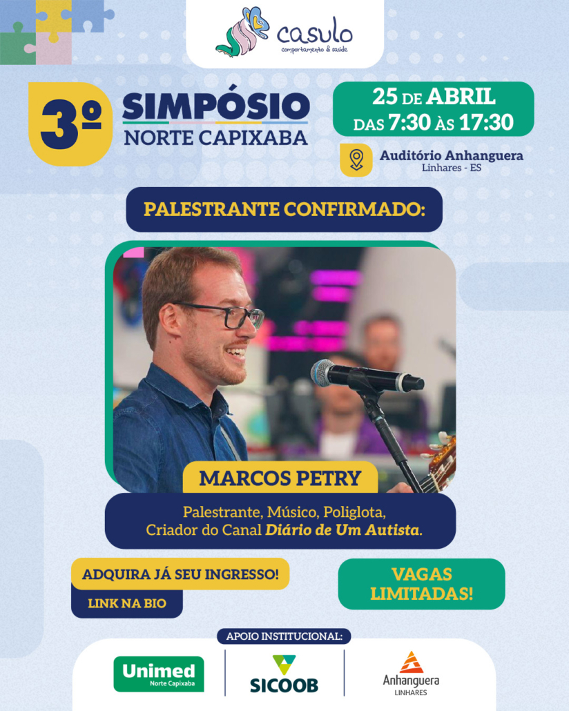 🧩 O 3º Simpósio Norte Capixaba da Casulo já tem seu primeiro palestrante confirmado: MARCOS PETRY